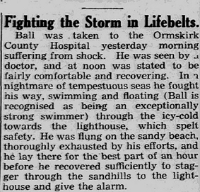 After swimming floating and drifting for more than an hour he reached land and lay exhausted on the tideline before recovering some strength and struggled up the through the sandhills at Formby to the boathouse keepers cottage on Lifeboat Road.