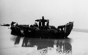 During the war she was used as target practice but a considerable amount of her still remains firmly imbedded in the sand.